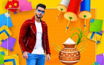 Makar Sankranti Photo Editor: Комплексный фоторедактор с настраиваемыми фонами и наклейками